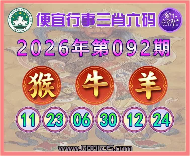 092期: 便宜行事 🍏三肖六码🍏【猴羊】开:牛06